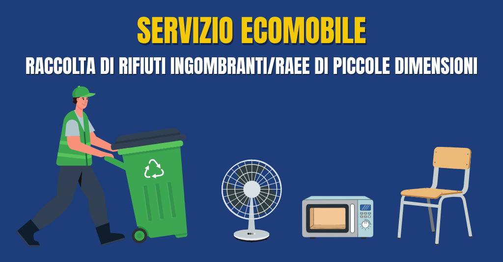 rifiuti ingombranti e RAEE di piccole dimensioni come sedie, ventilatori, stendibiancheria, ferri da stiro e piccoli elettrodomestici di uso domestico.