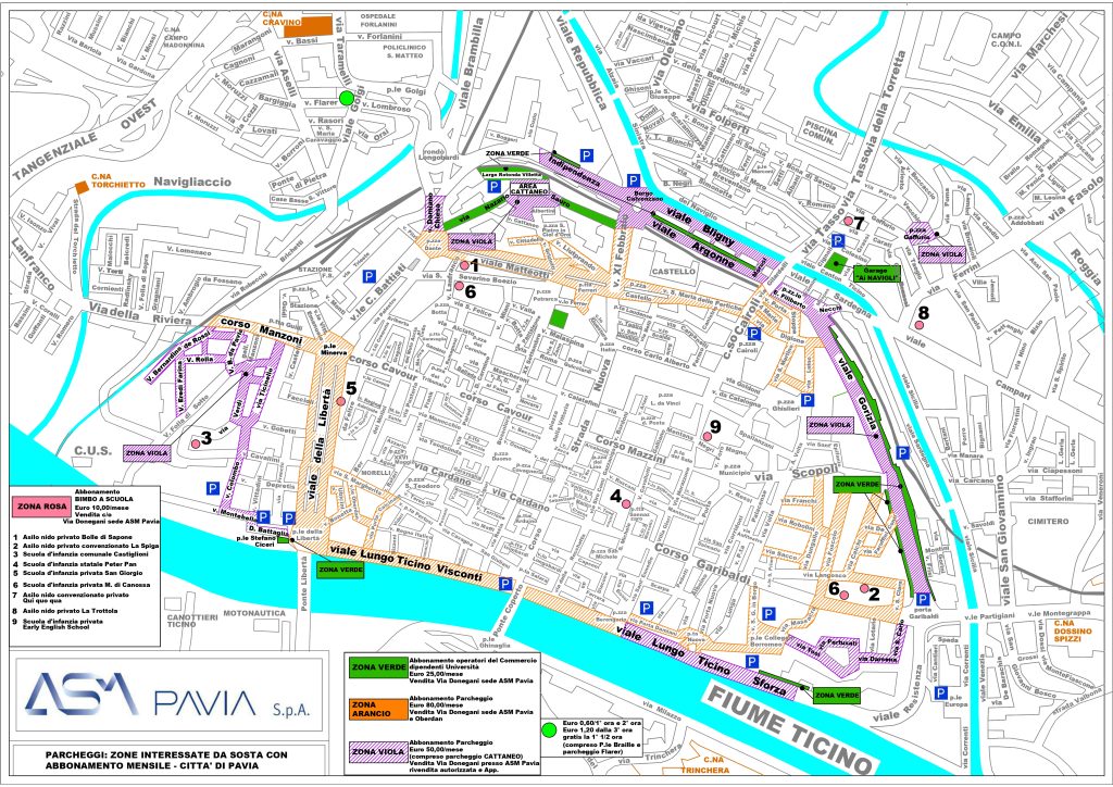 ATTENZIONE: gli abbonamenti mensili sono validi solo per le aree di sosta comunali in gestione ad ASM Pavia. Controlla con attenzione il cartello più vicino allo stallo, prima di effettuare il pagamento o consulta la cartina sottostante.